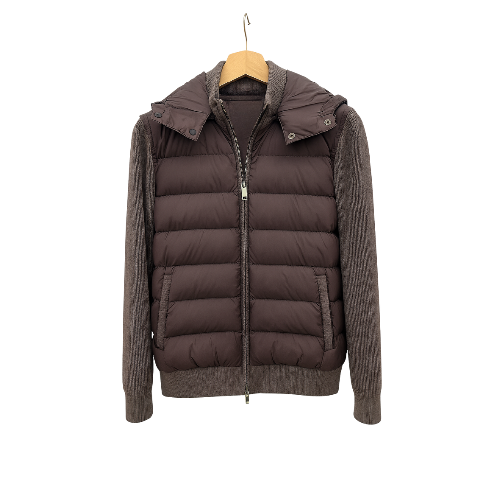 The Hudson Ribbed Cardigan offers a refined balance of cozy warmth and modern design. Featuring a ribbed knit body with a lightly padded quilted hood, it’s perfect for layering or wearing on its own for a smart, casual look.